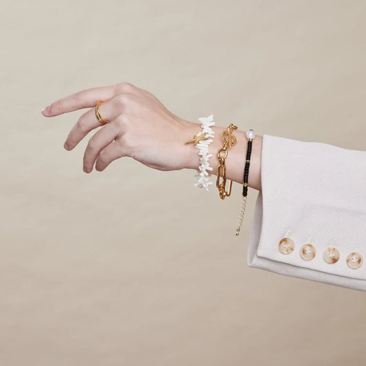 Set de Pulseras Chic Gold 4 Piezas - Serpiente, Perlas y Eslabones | Oro