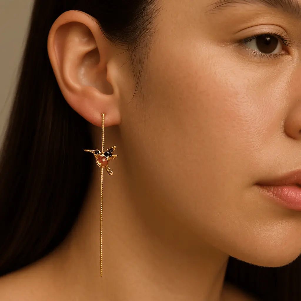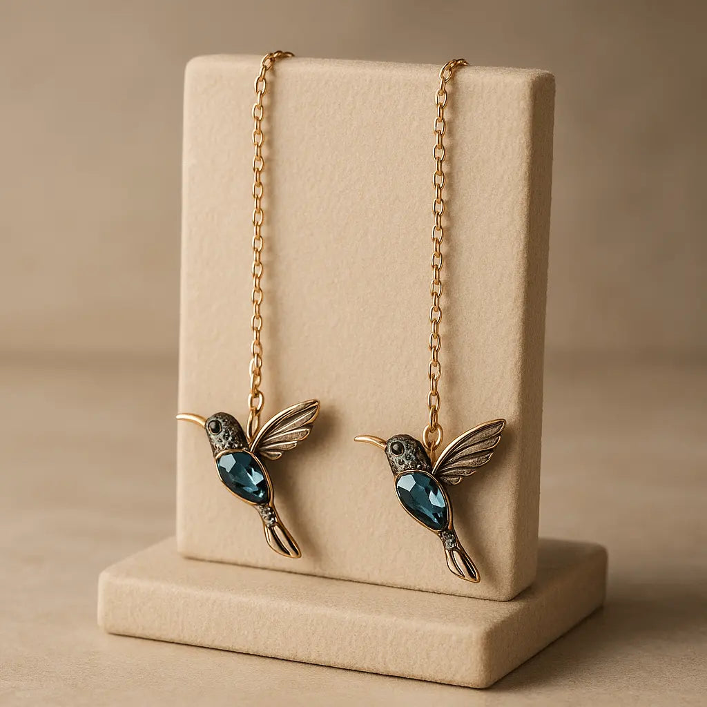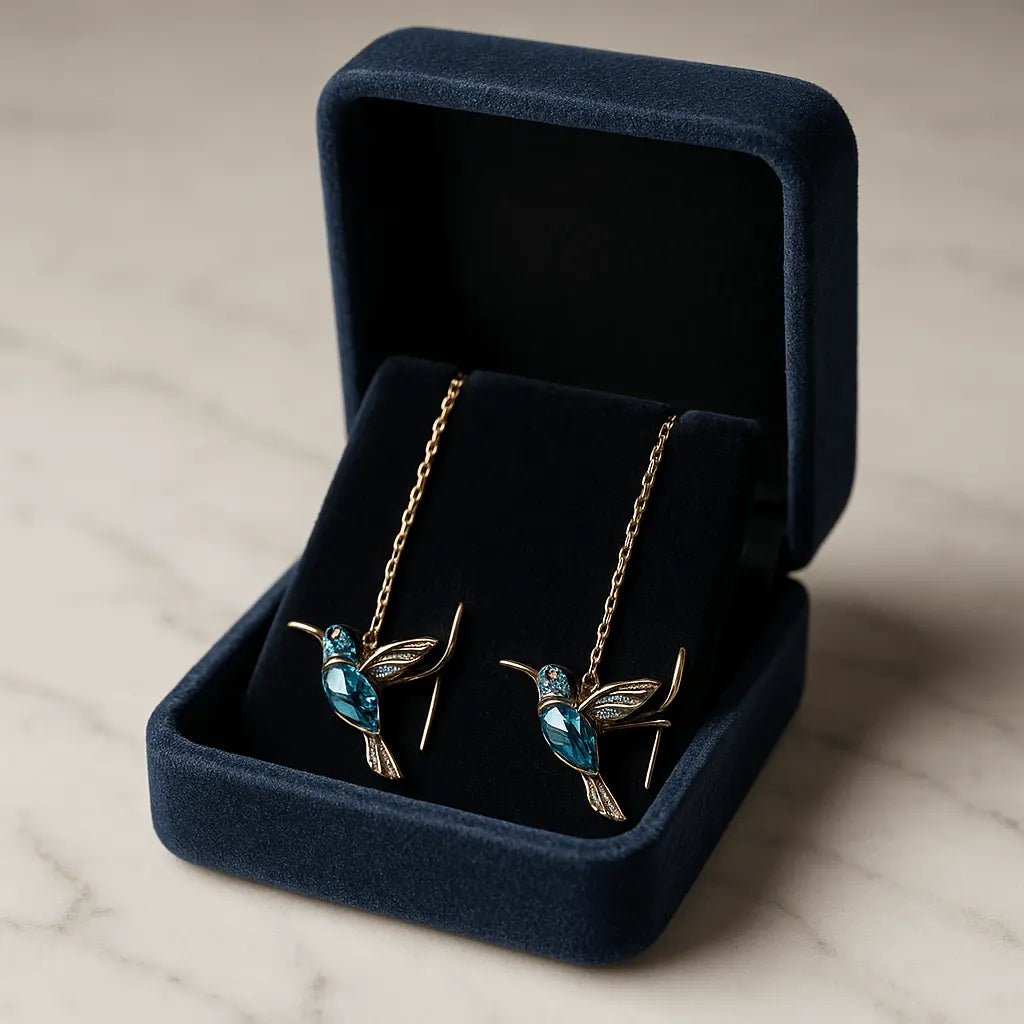 Un colibrí en pleno vuelo, capturado en una joya. Cada detalle del diseño refleja la armonía natural y la delicadeza del movimiento.